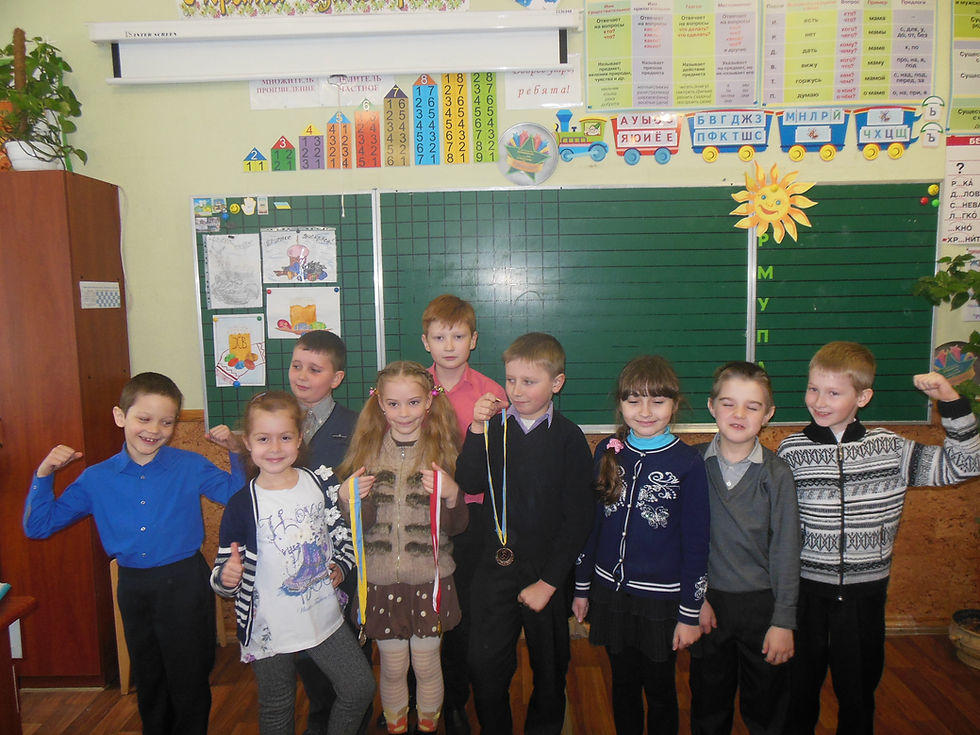 Ватраль Кирилл - 1 место на областных соревнованиях по Айкидо, Шатрук Иван - 1 место на городских соревнованиях по прыжкам на акробатической дорожке, 2 место по области, Медведчук Владимир - 1 место на городских соревнованиях по спортивной акробатике, Жадан Евгений - 3 место на Чемпионате города по спортивной акробатике, Вертола Александр - 3 место на Чемпионате города по Айкидо, Некрылова Дарья - 1 место в городских соревнованиях по спортивной гимнастике, Марфутенко Анастасия - лучший чтец в нашей школе и самый активный участник во всех школьных мероприятиях, Гнебедюк Иветта - призер областных, городских музыкальных и танцевальных конкурсов, участник международных, Казларов Владик - призовые места (1-3) на городских соревнованиях по Айкидо. И это еще не все! Знай наших!!!